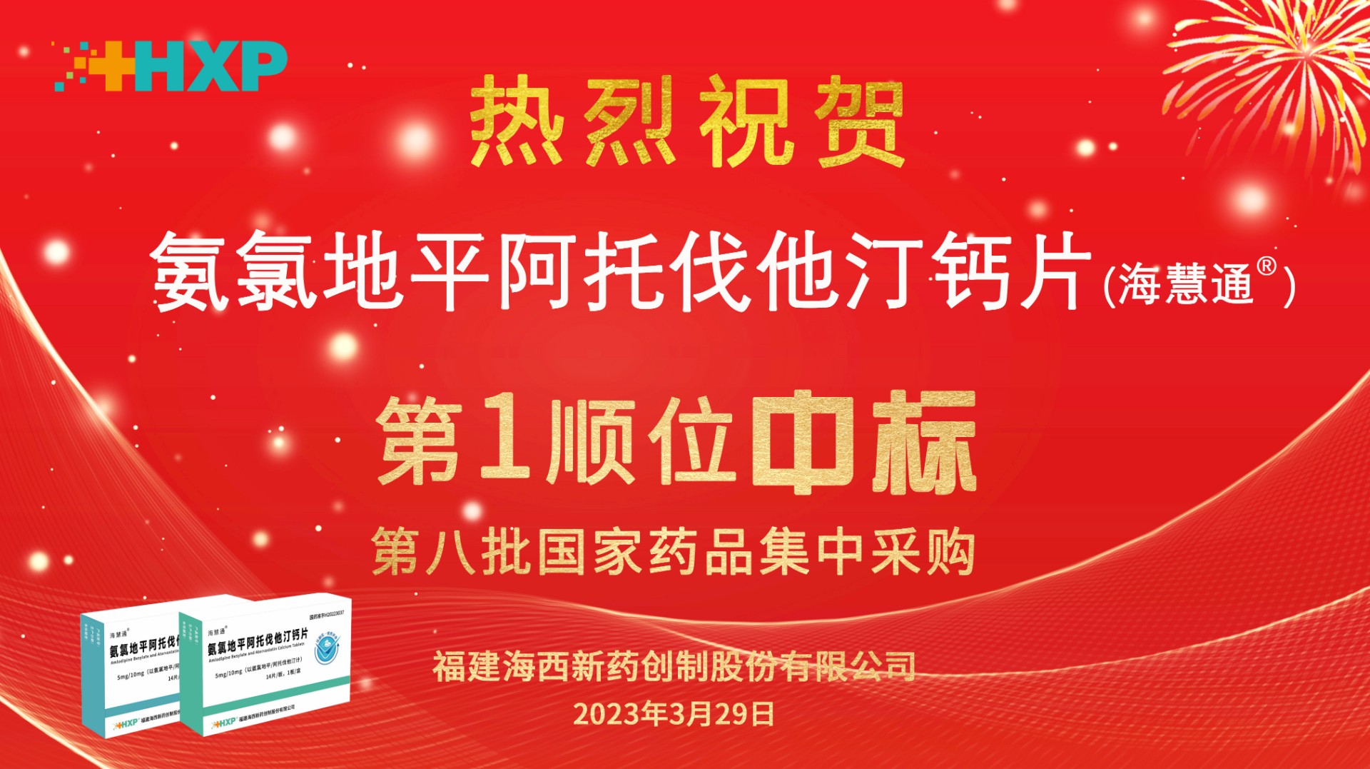 2023年3月29日,國家醫(yī)保局等相關(guān)部門組織的第八批國家藥品集中采購開標(biāo),海西新藥已(視同)通過仿制藥一致性評(píng)價(jià)的產(chǎn)品氨氯地平阿托伐他汀鈣片(商標(biāo)名:?;弁?)以第一順位中標(biāo)。